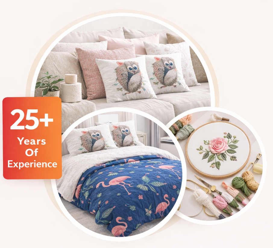 Our mission is to design and manufacture premium embroidered home furnishing products that meet international quality standards, support artisan livelihoods, and deliver value to our customers through customization, ethical production, and timely delivery.